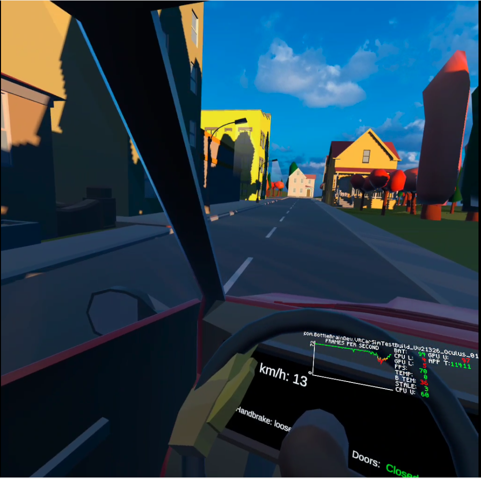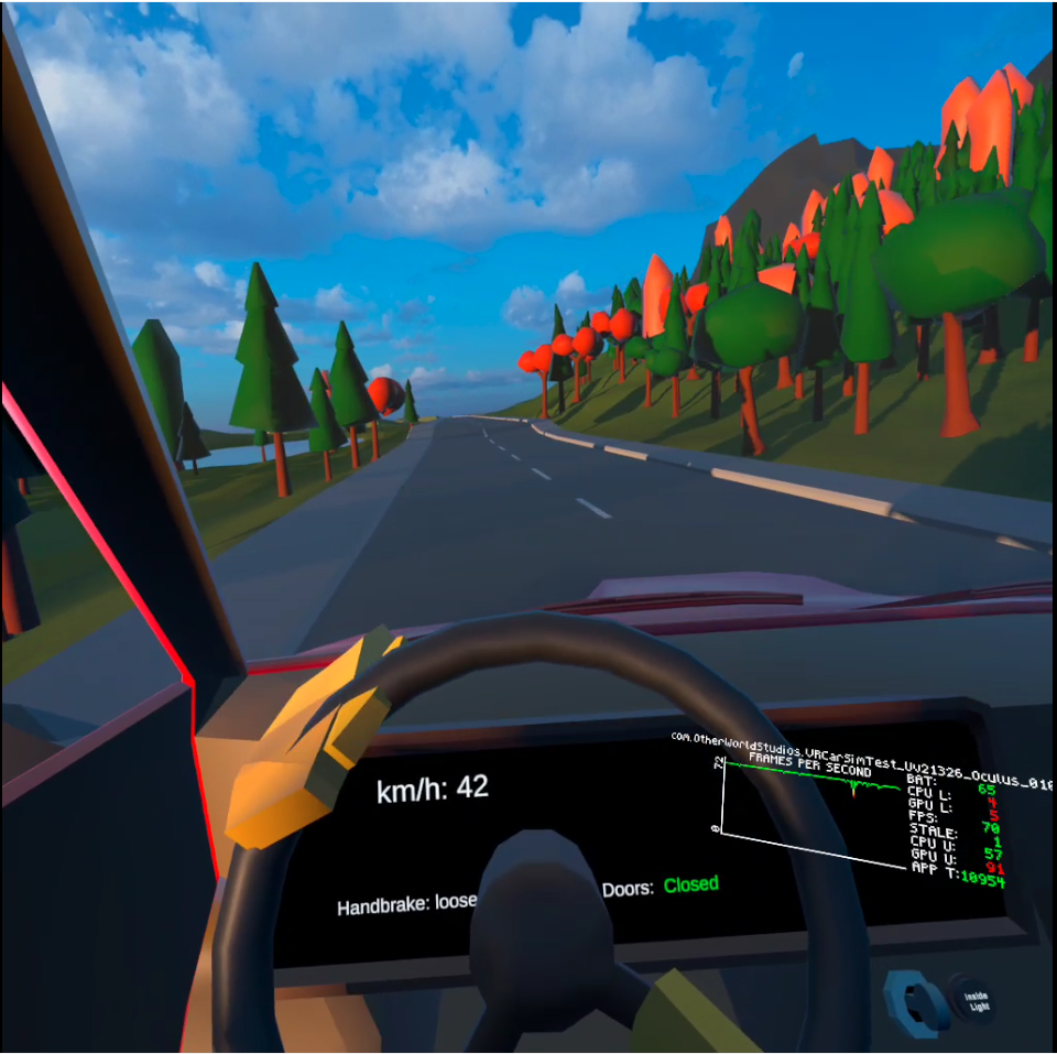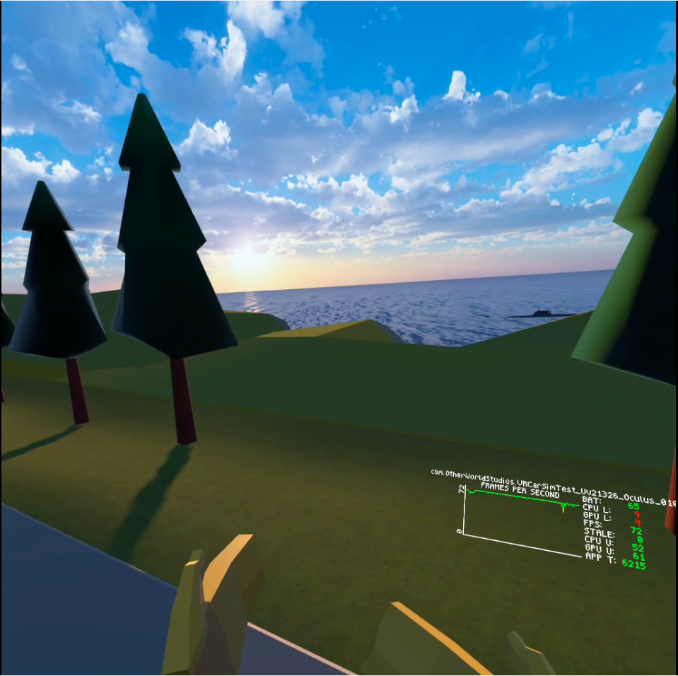The pictures show the actual state of the development with the OVR Metrics Tool enabled and in a more developed visual environment.