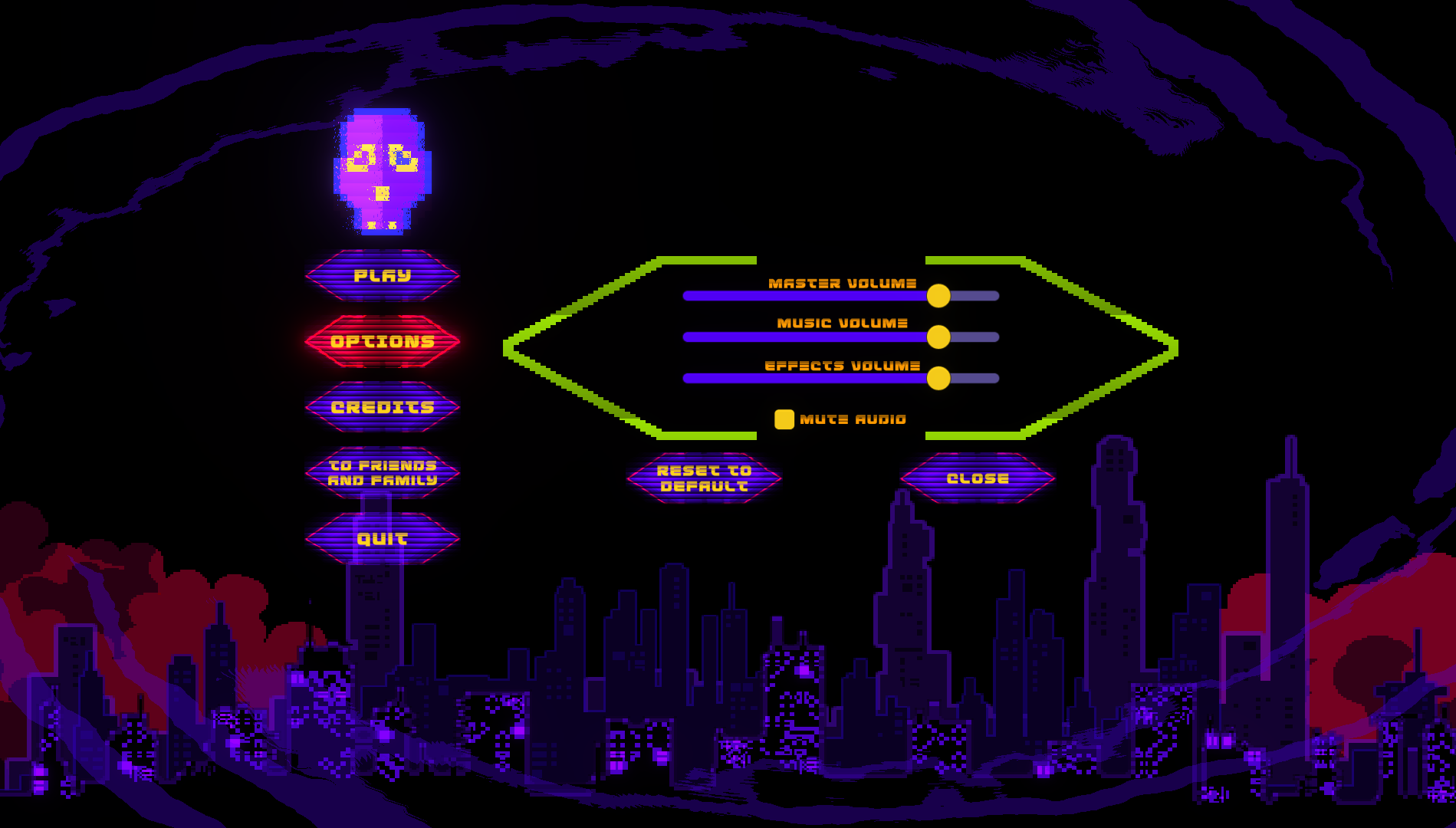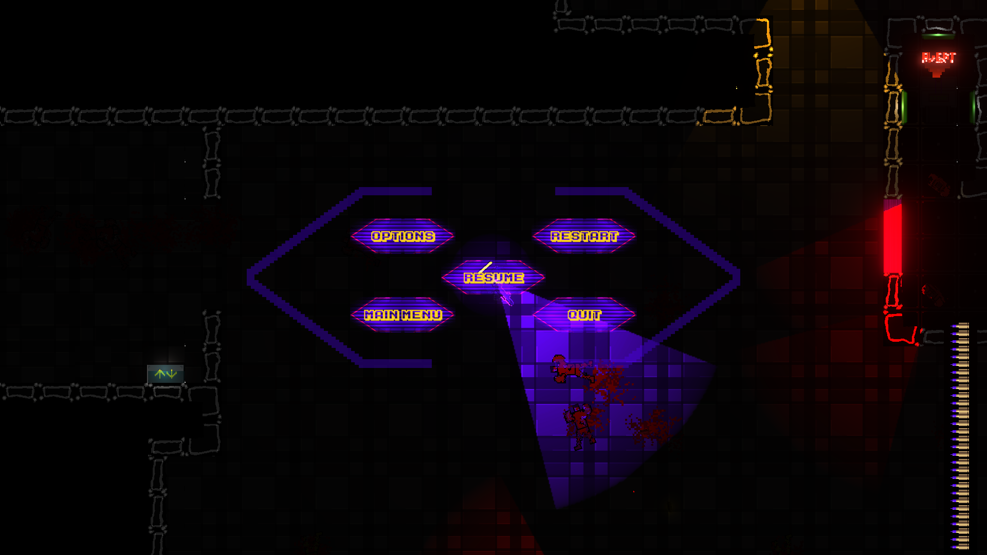 A dystopian 2D top-down action shooter set in a cyberpunk universe.