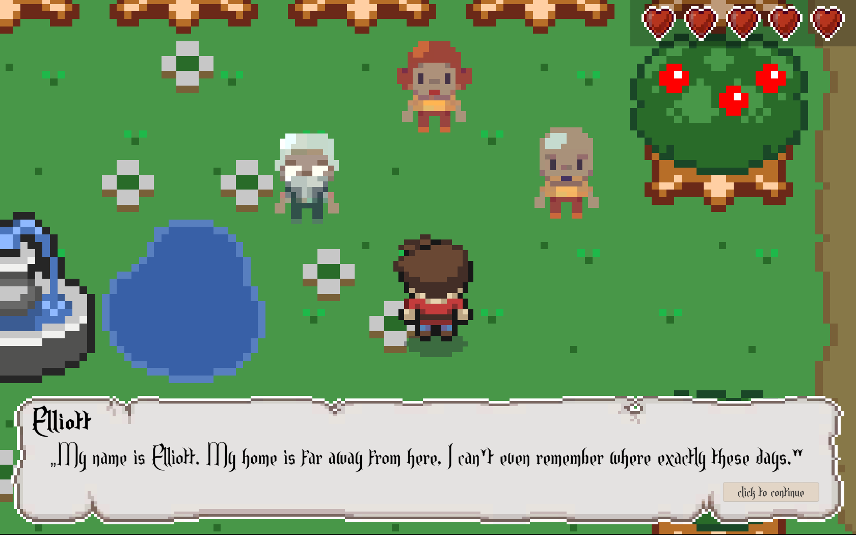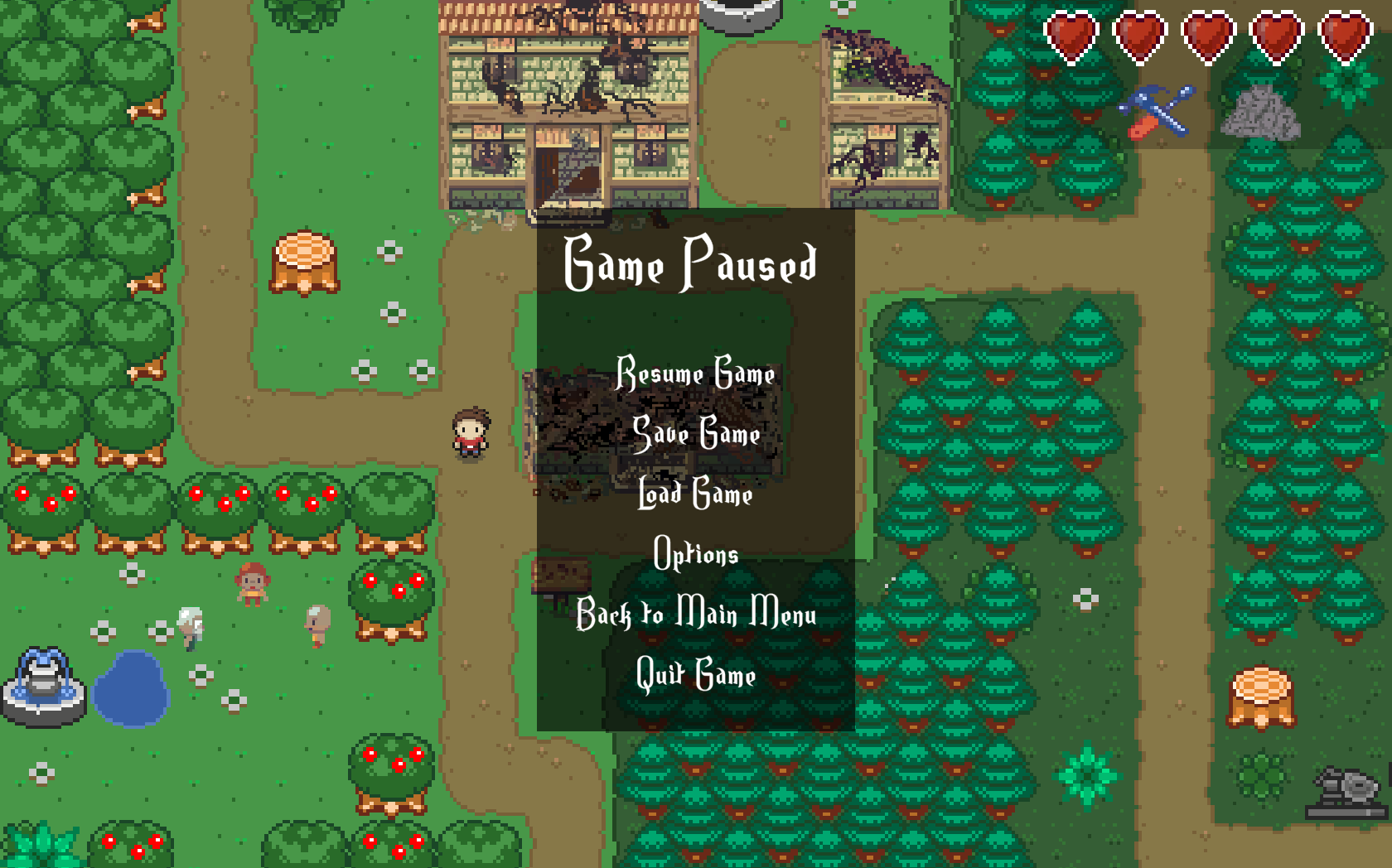 My tasks where the development/programming of the game menus and UI, the main map, player controller and game input as well as the interaction system and the persistence system. Also I contributed to the winning/loosing conditions and game management code and drawn some minor pixel art assets.