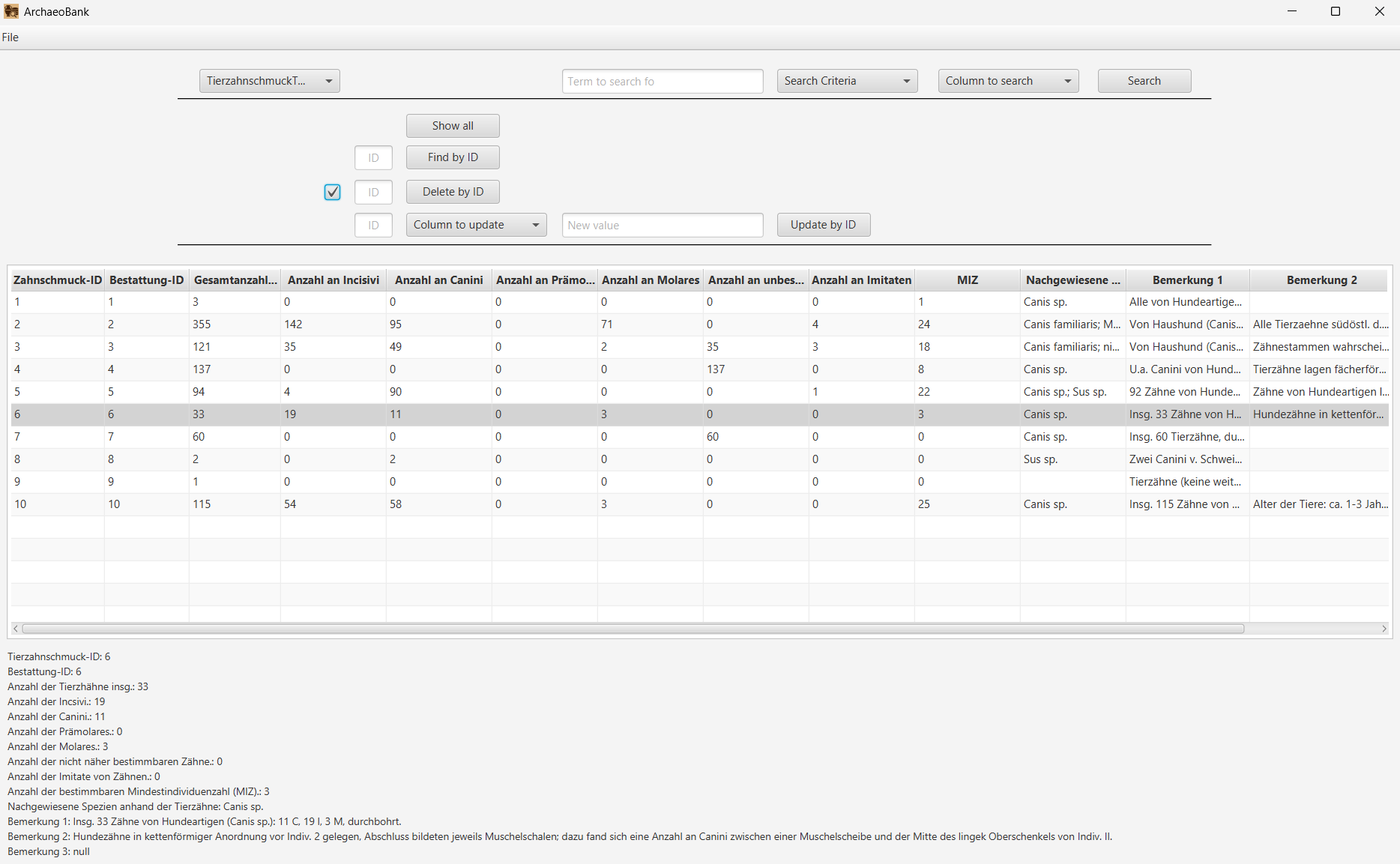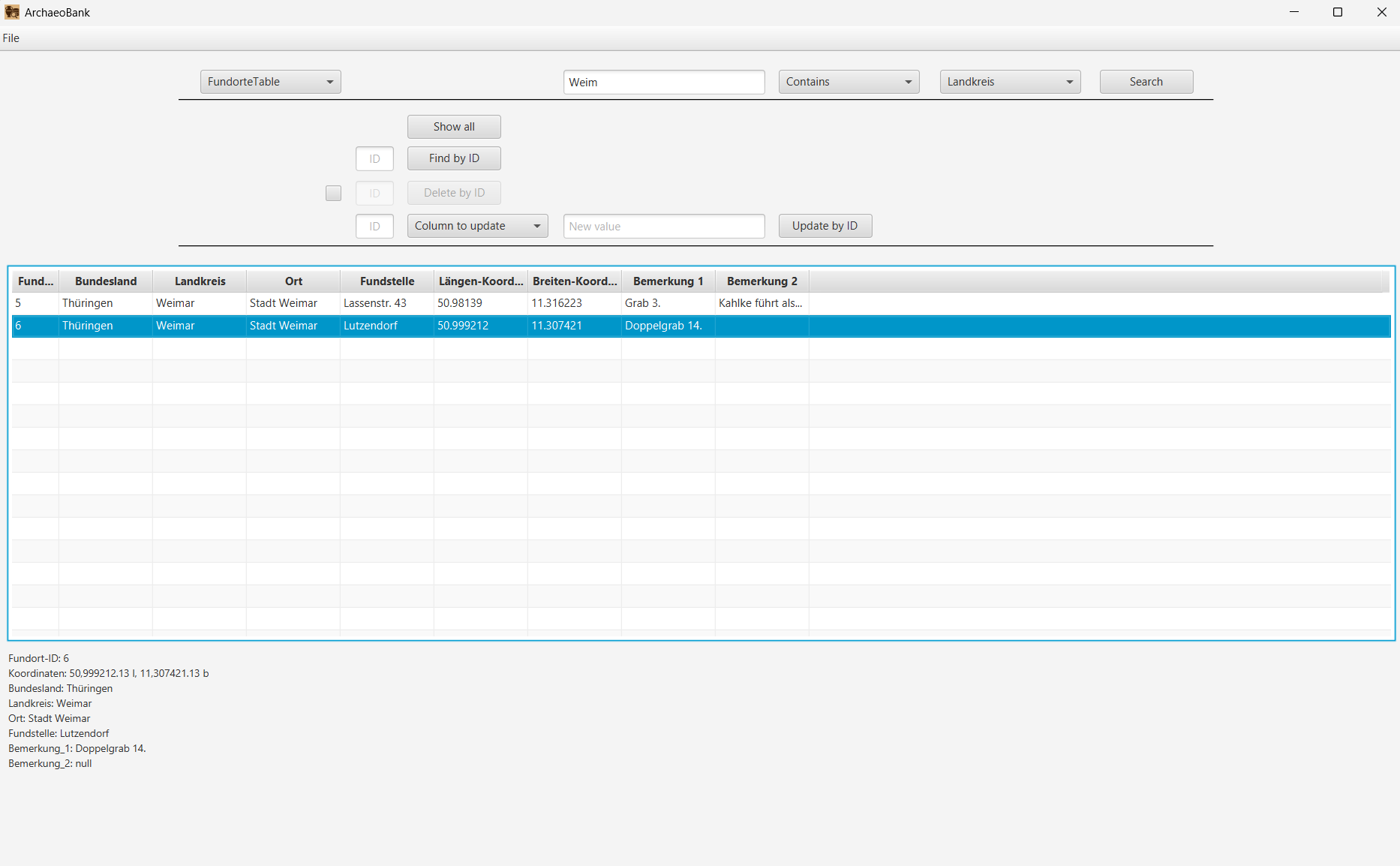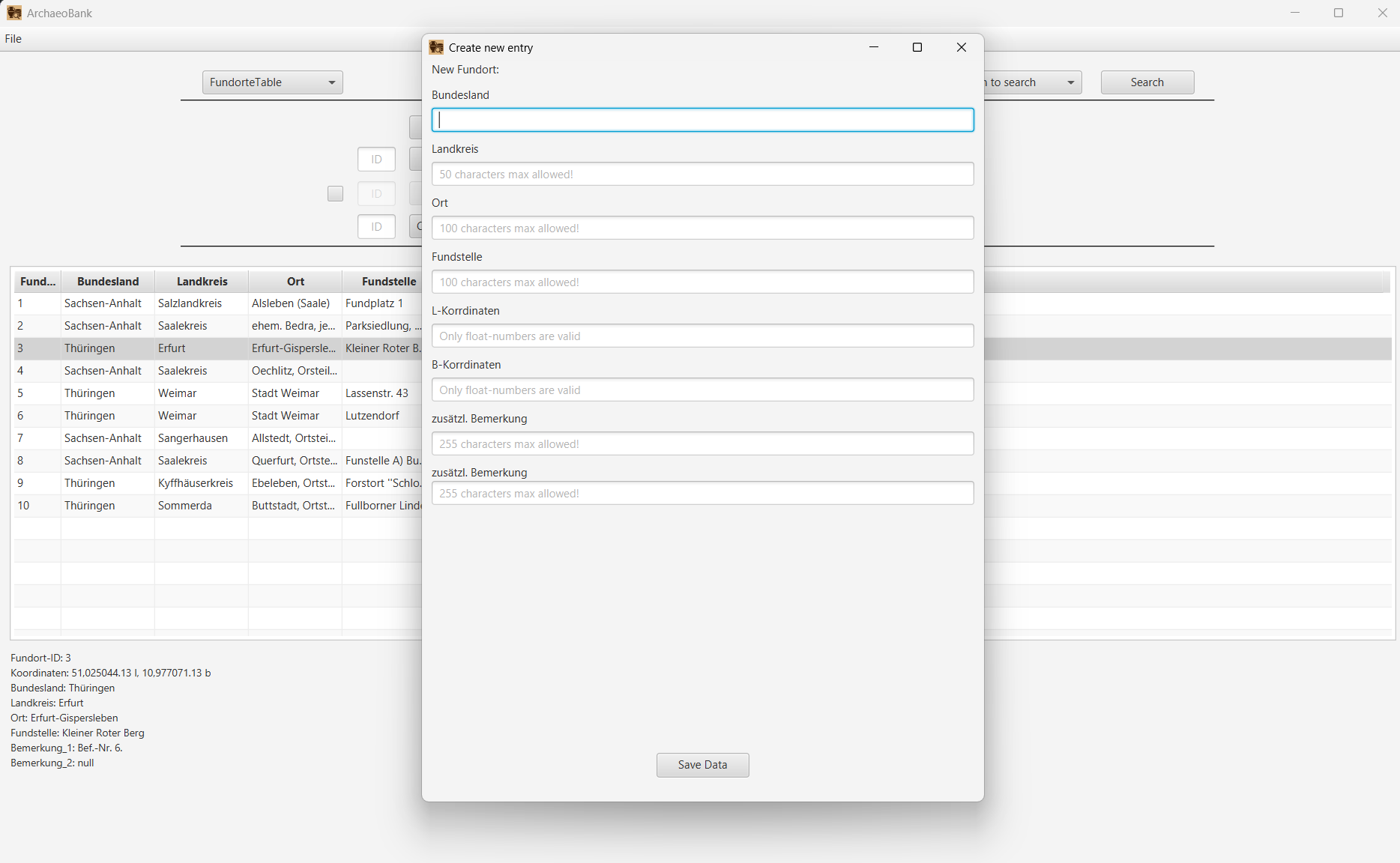 Right now it is still in simplified state and rather a proof of concept than a program ready for shipment. It is based on a database I created with MySQL and contains data I excerpted from different publications during the work on my masters degree in prehistoric archaeology.